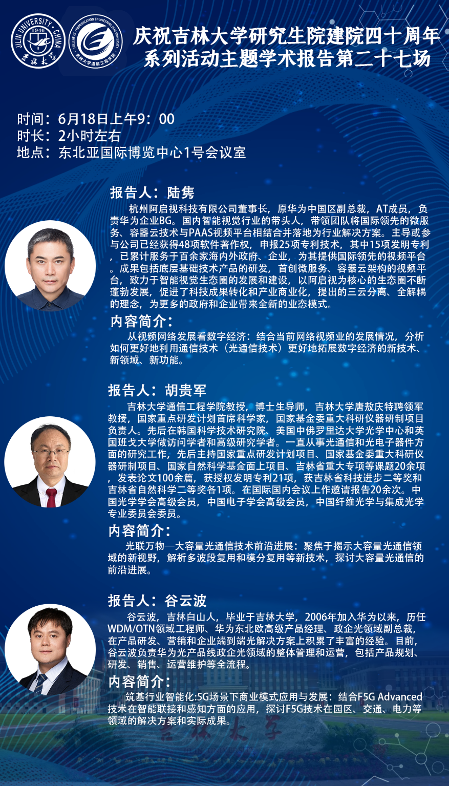 在长春东北亚博览中心举办了“光通信与光网络未来发展”学术报告会。本次会议吸引了众多行业重点领域的专家、学者和企业家齐聚一堂,共同探讨光通信领域的未来技术发展、市场应用和人才培养。会议由17吃瓜网
