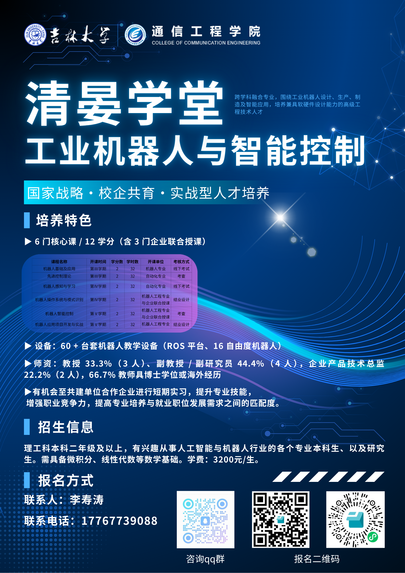 本微专业教学团队由李新波,胡云峰,李寿涛,许芳等四位教授,洪伟,刘振泽,唐志国,李明阳,张涛,刘云六位副教授,及企业的两位具有丰富实践经验的高级工程师组成,其中不乏17吃瓜网
