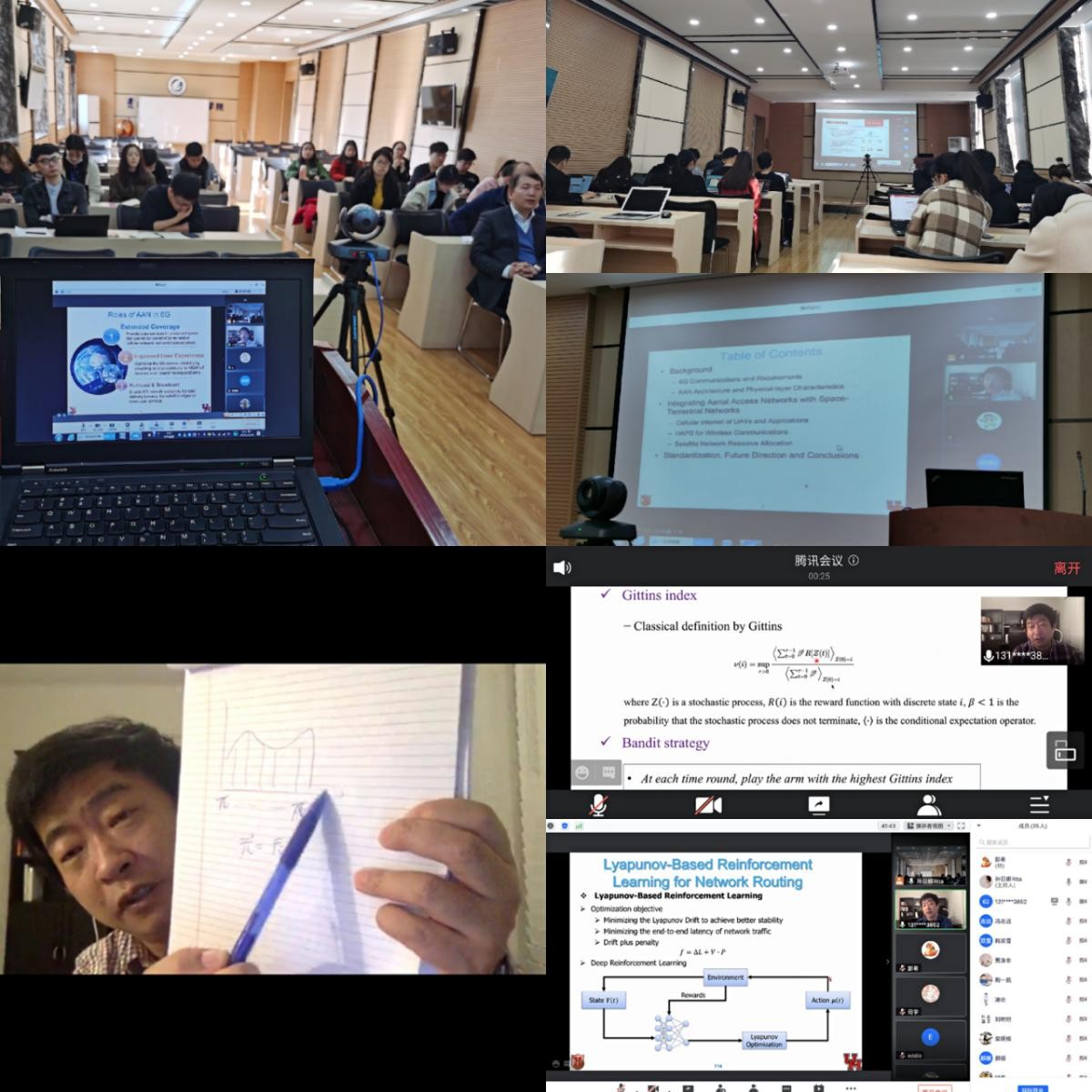 韩竹教授的六个学术报告共包含了五个专题,分别为"Aerial Access Networks for 6G: From UAV, HAP, to Satellite Communication Networks", "Reconfigurable Intelligent Surface for 6G: Communication, Sensing, and Localization", "Modern Delay Analysis for Networking: from MCMC, Martingale to Stochastic Network Calculus, Lyapunov and Age of Information", "Federated Learning Tutorial", "Multi-Armed Bandits Its Application in Wireless Networking"。