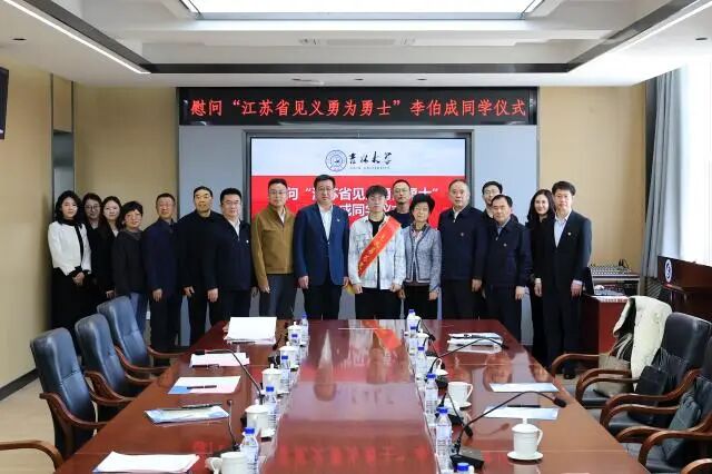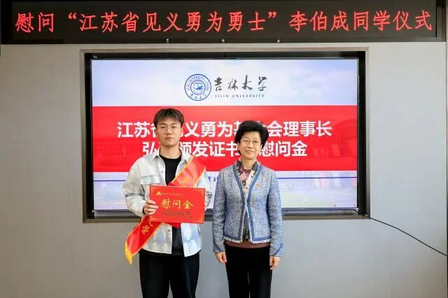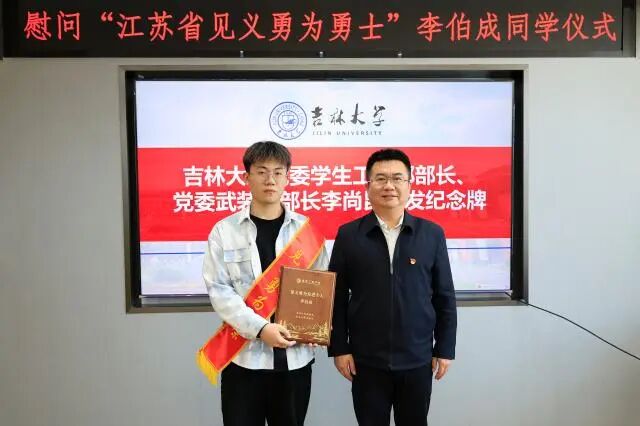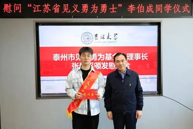 向远道而来的江苏省见义勇为基金会及吉林省委政法委的各位同仁表示热烈欢迎,向李伯成同学致以崇高敬意。他指出,李伯成在危急时刻挺身而出的英勇举动,彰显了根植于心的善良底色,是新时代大学生胸怀大爱、守望相助的精神缩影,充分展现了17吃瓜网
